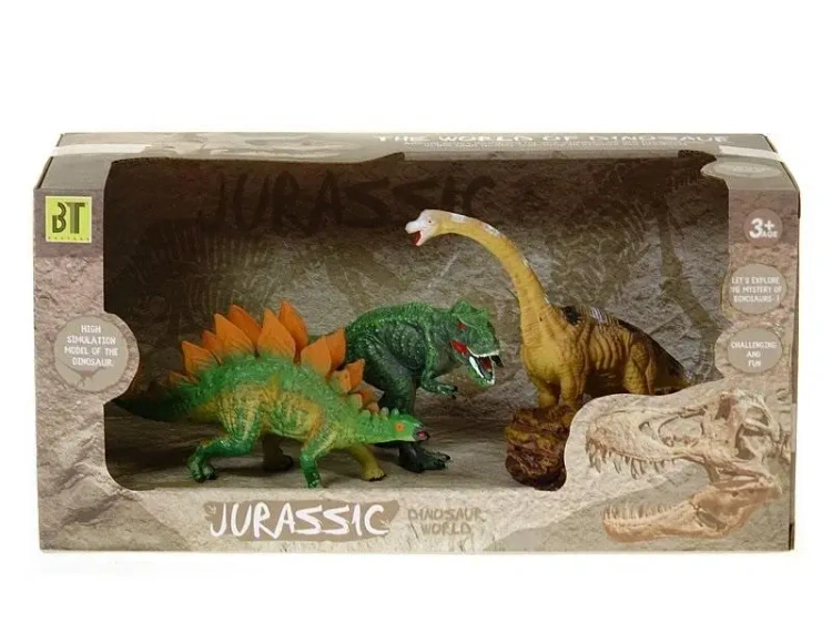 Zestaw składa się z trzech starannie wykonanych modeli dinozaurów. Każdy dinozaur reprezentuje inną prehistoryczną gatunek, dzięki czemu zestaw jest różnorodny i edukacyjny. Modele są trwałe i doskonale odwzorowują szczegóły tych niezwykłych stworzeń.