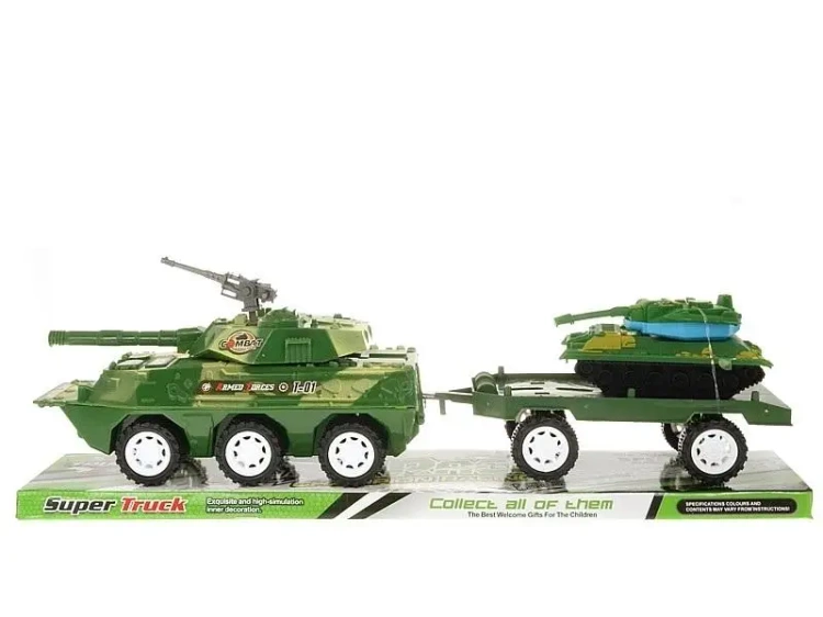 Przedstawiamy Państwu świetną zabawkę dla małych miłośników militariów - pojazd wojskowy z przyczepą. Model ten został wyposażony w dodatkowy czołg, co zdecydowany zwiększa atrakcyjność zestawu. To idealna propozycja dla dzieci, które uwielbiają wcielać się w role bohaterów bitewnych. Nowe przygody i scenariusze do zabawy są teraz w ich zasięgu!