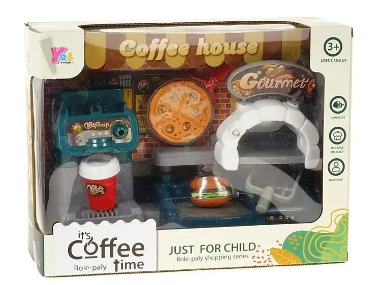 Prezentujemy komplet urządzeń gastronomicznych składających się z: stoiska z burgerami, ekspresu do kawy oraz kasy.