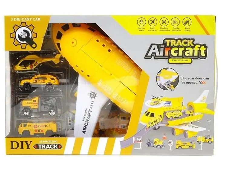 Baza lotnicza z samolotem transportowym i czterema pojazdami o rozmiarach 36x24x11cm
