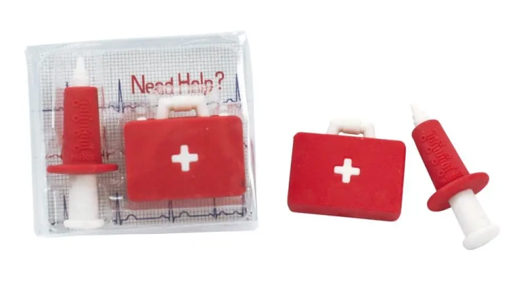 Gumki mogą służyć nie tylko do korygowania błędów na papierze. Dzięki swojemu oryginalnemu kształtowi, mogą posłużyć jako zabawka, lub dekoracja biurka. To doskonały pomysł na prezent dla tych, którzy uwielbiają niebanalne przedmioty.Zestaw medyczny