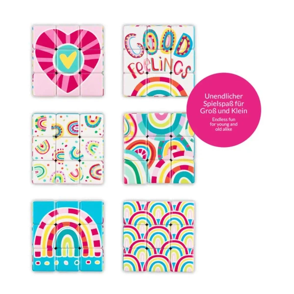 Tradycyjna gra mająca na celu rozwijanie cierpliwości i koncentracji, teraz z nową szatą graficzną - zawiera sześć zachwycających wzorów GOOD FEELINGS. Ta niezwykła kostka 3D, daje wyjątkowe możliwości - sprawdza się jako zawiła łamigłówka, jak również jako doskonała zabawka do umilania czasu. To nieskończona zabawa nie tylko dla najmłodszych, ale także dla dorosłych. Przeznaczona od 3 roku życia.