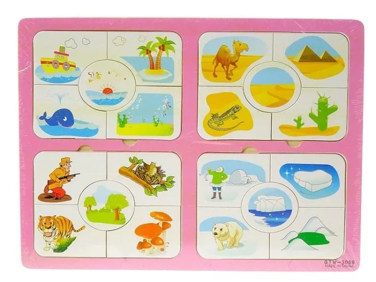 Ciekawa i edukacyjna zabawkaNie tylko rozwija umiejętności manualne i logiczne, ale również pozwala na naukę poprzez zabawę. Drewniana układanka z czterema obrazkami to kompleksowy rozwój dziecka podczas dobrej zabawy.