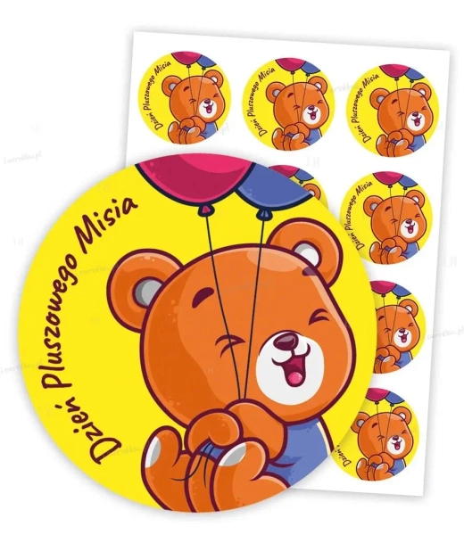 Zestaw 24 naklejek o średnicy 60mm z sympatycznymi pluszowymi misiami, pomyślany jako oryginalny upominek z okazji obchodów Dnia Pluszowego Misia!