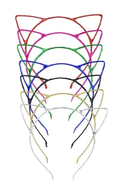 Wykonana z metalu opaska z kocimi uszkami, upiększona tkaniną.