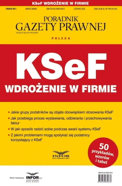 W połowie 2024 r. podatnicy będą musieli zmierzyć się z rewolucją w zakresie fakturowania. Zgodnie z uchwaloną nowelizacją ustawy z 11 marca 2004 r. o podatku od towarów i usług od 1 lipca 2024 r. wszystkie faktury dla podmiotów gospodarczych (B2B) będą wystawiane i odbierane w formie elektronicznej w określonej strukturze za pośrednictwem Krajowego Systemu e-Faktur (KSeF). Publikacja "KSeF. Wdrożenie w firmie" jest obszernym przewodnikiem po KSeF, prezentującym zasady oraz praktyczne aspekty jego funkcjonowania. Przedsiębiorcy, osoby odpowiedzialne za rozliczenie VAT w firmie, księgowi i główni księgowi, a także właściciele i pracownicy biur rachunkowych dowiedzą się z poradnika, jak korzystać z KSeF oraz jakie działania należy podjąć, aby z sukcesem wdrożyć KSeF. W kolejnych częściach tej publikacji przedstawione zostały: główne cele i założenia KSeF, praktyczne aspekty wynikające z korzystania z tego systemu, włączając w to proces wystawiania i odbierania faktur ustrukturyzowanych, przechowywanie dokumentów w systemie, rodzaje dostępu oraz narzędzia ułatwiające korzystanie z KSeF. Poradnik kończy się analizą awarii systemu, problemów praktycznych, jakie mogą wyniknąć w trakcie korzystania z KSeF, jak również przepisów przejściowych związanych z wprowadzeniem tego rozwiązania. Z publikacji Czytelnik dowie się między innymi: jak przebiega proces wystawiania i odbierania faktur ustrukturyzowanych, jakie są rodzaje dostępu oraz narzędzia ułatwiające korzystanie z KSeF, jak radzić sobie podczas awarii KSeF, jakie problemy praktyczne mogą pojawić się w trakcie korzystania z KSeF.