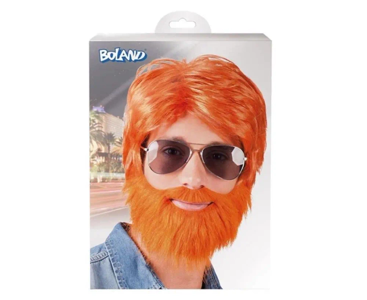 Ruda peruka męska ze specyficznym stylem, znanym jako Dude. Kompletowana jest brodą.