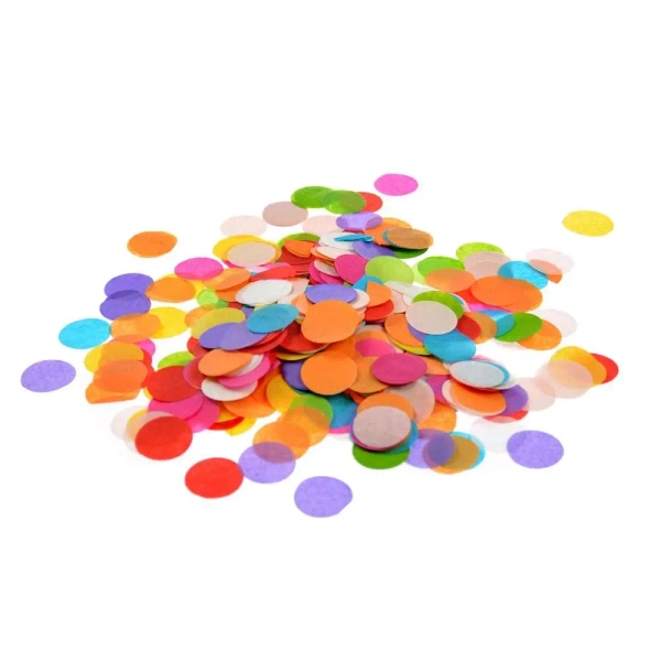 Wyjątkowe i pełne kolorów konfetti wykonane z lekkiej bibuły daje ciekawy efekt wizualny, unosząc się powoli w powietrzu. Doskonały wybór na różnego rodzaju uroczystości - może to być zarówno ślub, urodziny, jak również noworoczne przyjęcie. Pakiet zawiera mieszankę różnych barw, dodając do Twojego wydarzenia tęczowego blasku. Jest to produkt uniwersalny, który dodaje koloru każdej uroczystości. W każdym opakowaniu znajduje się 15 g wysokojakościowego produktu.