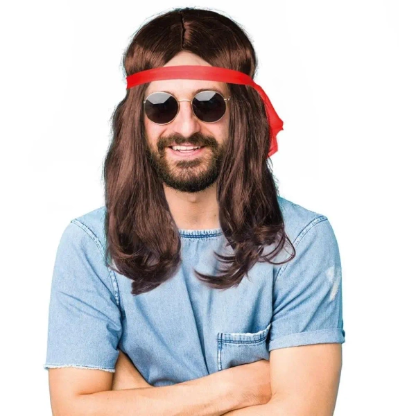 Prezentujemy unikalną perukę w sam raz dla miłośników stylu hipisowskiego. Wykonana z syntetycznych włosów w tonacji brązowej, doskonale uzupełni Twój strój na każdą imprezę tematyczną czy bal przebierańców.