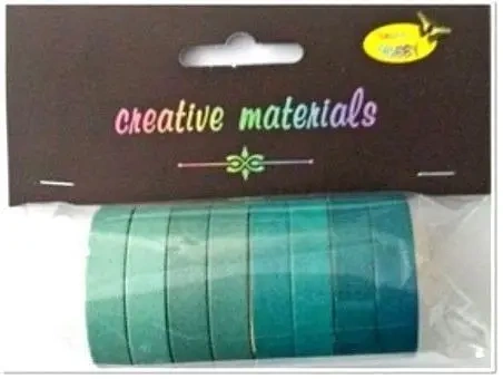 Komplet 8 zdobionych taśm samoprzylepnych, wytworzonych z wytrzymałego papieru z Japonii. Każda taśma ma długość 3 metrów i szerokość niecały 1 cm. Przewagą tych taśm jest to, że można je bez trudu odlepić od powierzchni bez zaszkodzenia jej.