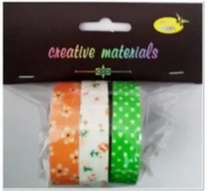 Prezentowany zestaw zawiera trzy samoprzylepne taśmy materiałowe o długości 4 mb każda, ozdobione różnorodnymi wzorami. Są one łatwe w użyciu, a ich znaczącą zaletą jest fakt, że można je bezproblemowo odkleić od podłoża, nie powodując jego uszkodzenia.