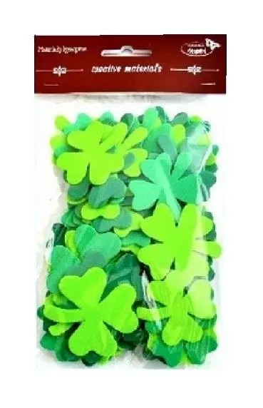 Prezentujemy Państwu zestaw koniczyn w zielonej tonacji. W pakiecie znajdują się 44 sztuki, których rozmiary mieszczą się w zakresie od 4,5 do 6,5cm. Zestaw wyróżnia się intensywnością zielonego koloru, co czyni go doskonałym elementem dekoracyjnym.