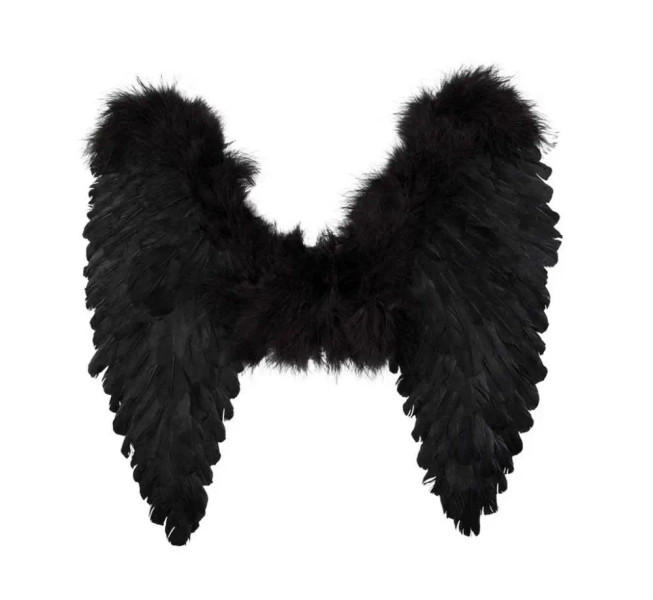 Skrzydła wykonane w stylu aniołów, charakteryzujące się wymiarami 50 x 50 cm. Czarne na kolorze, dodają tajemniczości. Wyposażone są w gumki, które ułatwiają ich zamocowanie na plecach.