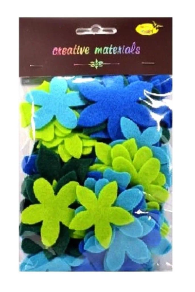 Ten produkt to zestaw 60 elementów kwiatowych wykonanych z filcu w różnych rozmiarach od 65 do 48 mm. Elementy te charakteryzują się zimnymi odcieniami, które pasują do wielu projektów rękodzielniczych. Numer identyfikacyjny produktu to DS-522-33.