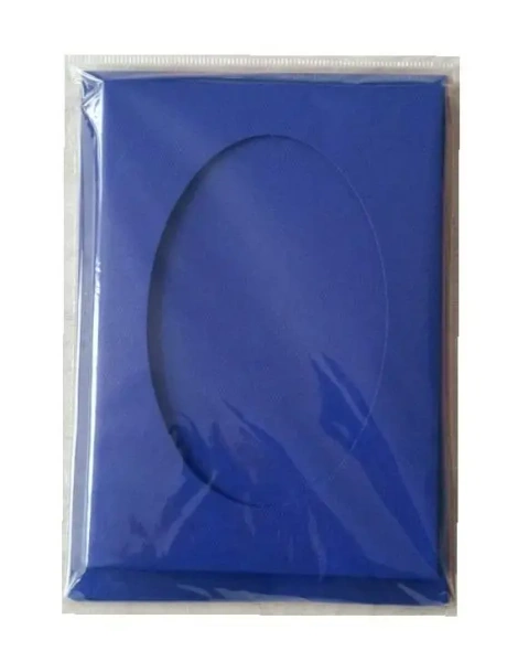 Zapraszamy do zakupu granatowego kompletu składającego się z pięciu kopert C-6 oraz pięciu kart passepartout, które posiadają atrakcyjne, owalne wycięcie.