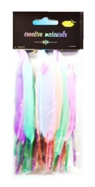 W zestawie 50 twardych piórek o długości 15cm w pastelowych kolorach