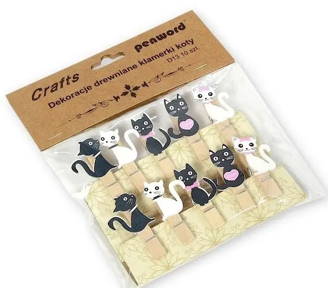 Pragniesz dodać nieco oryginalności do swojego wnętrza lub prezentu? Idealnym rozwiązaniem będą drewniane klamerki ozdobione motywem uroczych kotów. W pakiecie znajduje się 10 sztuk, co pozwoli na stworzenie niezapomnianego efektu.