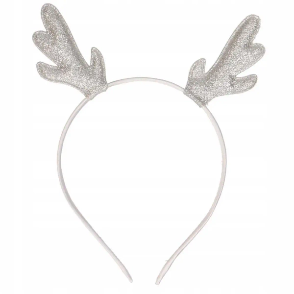 Przyciągająca wzrok opaska w kształcie rogów renifera. Rogi udekorowane są błyszczącym materiałem, podkreślającym świąteczny charakter produktu. Opaska została obita miękką tkaniną dla komfortu noszenia.