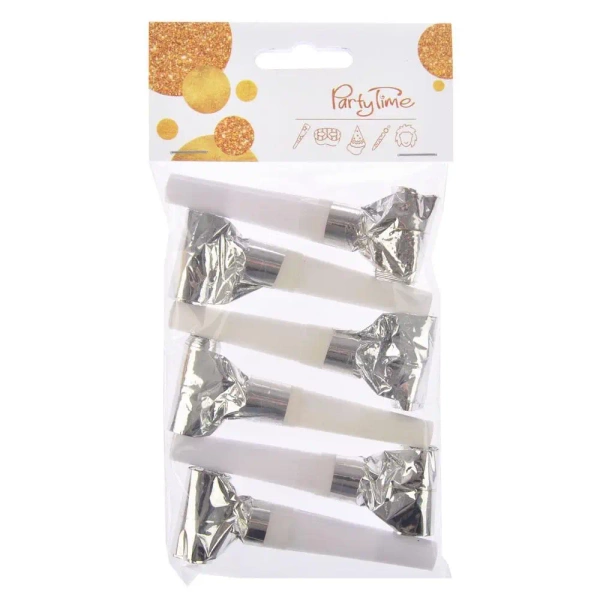 Fenomenalny dodatek do wszelkich okazji, które gwarantuje wyjątkowy klimat. Gwizdki Celebrate to atrakcja, dzięki której każda zabawa stanie się ekscytującym wydarzeniem. Rozmiar każdego gwizdka po rozwinięciu wynosi 2,5 x 35 cm, co czyni je zauważalnym i efektownym dodatkiem. W zestawie oferowane są dwie różne opcje kolorystyczne: elegancki złoty oraz klasyczny srebrny.