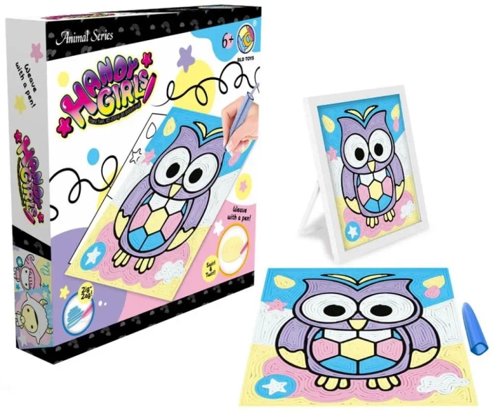 W skład tego kreatywnego zestawu do tworzenia obrazków wchodzą: specjalny "rysik" do włóczki, gama kolorowych włóczek oraz obrazek o powierzchni przypominającej "rzepka". Korzystając z rysika, maluch może wypełnić obrazek różnobarwnymi włóczkami i stworzyć na ten sposób wyjątkowe dzieło plastyczne. Do wyboru są różne wzory obrazków.