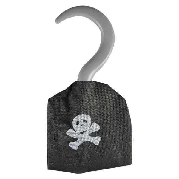 Podczas stylizacji na pirata, niezbędne jest użycie pewnych akcesoriów. Niewątpliwie jednym z nich jest ten dowcipny piracki hak. Hak ten jest pokryty miękkim mankietem z materiału, który ukrywa dłoń użytkownika. Wyrób ten został wykonany z plastiku w odcieniu szarości. Na mankiecie znajduje się ciekawy wzór czerepu z piszczelami ułożonymi na krzyż. Dlatego jest to doskonałe uzupełnienie dla każdego, kto planuje założyć piracki strój.