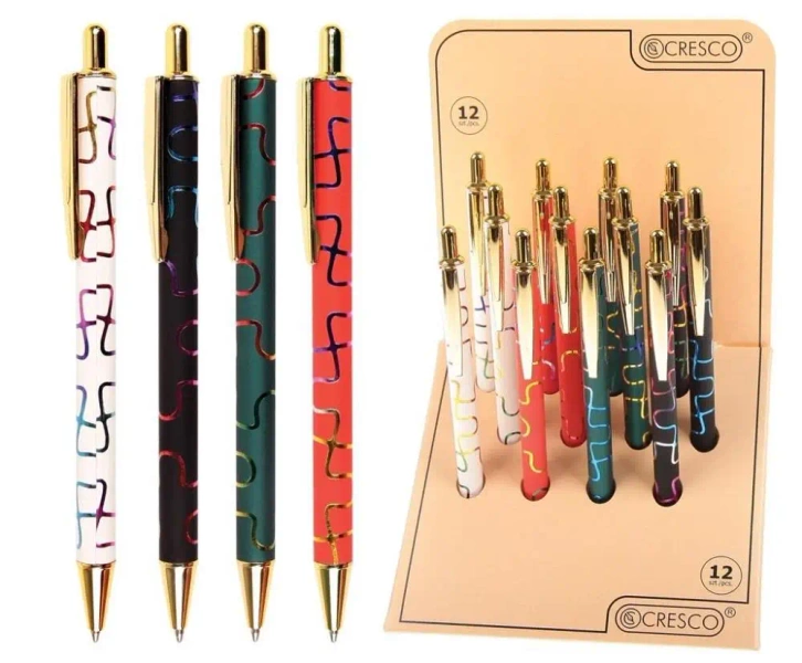Zestaw 12 sztuk długopisów, dostępne aż w 4 różnych odcieniach. Wszystkie skrupulatnie spakowane w jednym zbiorczym opakowaniu.