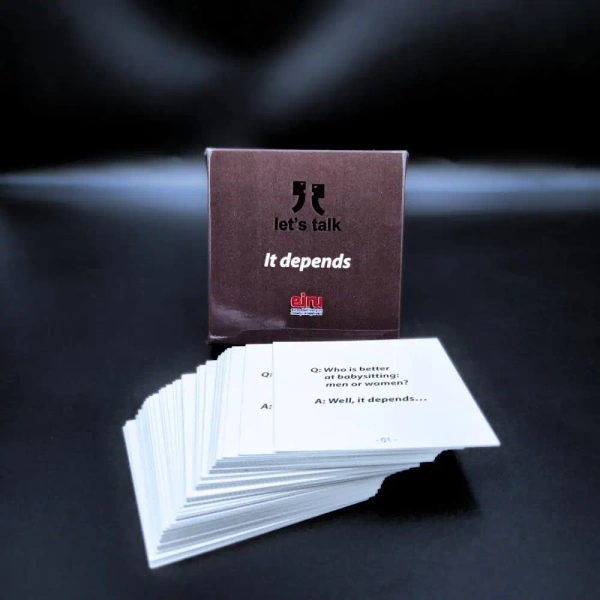 Autorką mini setu, który ma na celu zmienić wiele aspektów w pracy nauczyciela, jest Ewa Torebko. Często odczuwała boleśnie słuchając niewłaściwego użycia zwrotu "to zależy". Postanowiła to zmienić, tworząc 48 niekonwencjonalnych pytań. Odpowiedź na każde z nich powinna rozpoczynać się słowami "Well, it depends..." Czy jesteś gotowy na to wyzwanie?Przykładowe karty:
