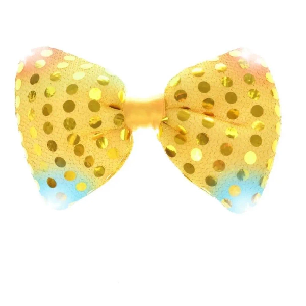 To muszka na imprezę, która posiada wbudowane diodami LED. Dekorowane jest połyskującymi kropeczkami, które dodają jej na oryginalności. Muszka zawiera kolorowe diody LED, które są napędzane trzema bateriami guzikowymi AG10, które jednak nie są dodawane do produktu. Jest to doskonałe uzupełnienie strój na różnorodne okazje, takie jak urodziny, wieczór kawalerski, karnawał, a także na koncerty i festiwale. Produkt oferowany jest w różnych wariantach kolorystycznych, które są wysyłane losowo. Wyposażone w elastyczną gumkę, muszka jest wygodne w noszeniu. Jej wymiary to 14x9 cm.
