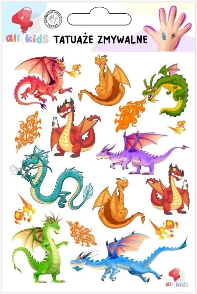 Tatuaże zmywalne dla dzieci Smoki - All4Kids