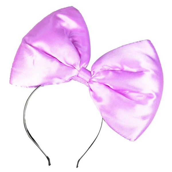 Wielka satynowa kokarda na opasce w kolorze różowym