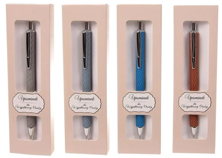 Oferta obejmuje długopis o różnorodnych wzorach. Proszę mieć na uwadze, że wybór wzorów jest losowy. Cena dotyczy jednej sztuki. Do wyboru są 4 różne kombinacje kolorów.