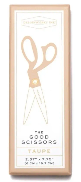 Złoto-kolorowe nożyczki zaprezentowane w atrakcyjnym pudełku Taupe, od zaufanej marki DESIGNWORKS INK.