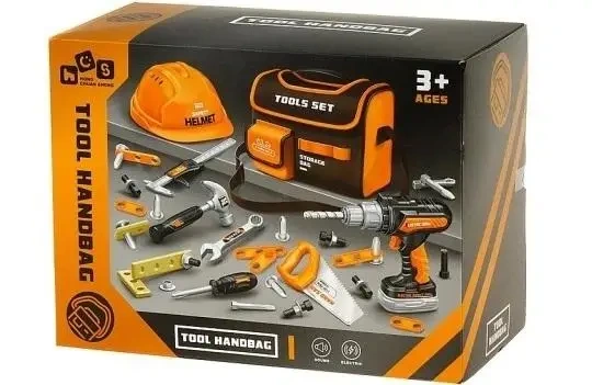 Zestaw narzędzi z wiertarką zasilaną na baterie; o wielkości 29x22x14,5cm, składowany w pojemniku