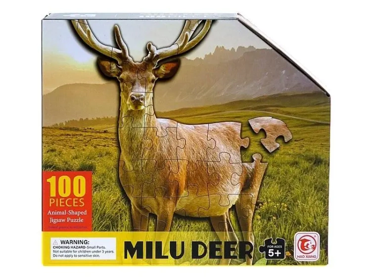 Komplet układanki składa się z 100 części i po złożeniu ukazuje obraz jelenia. Wymiary pudełka, w którym znajdują się puzzle, to 23 cm na 6,2 cm na 19,5 cm.