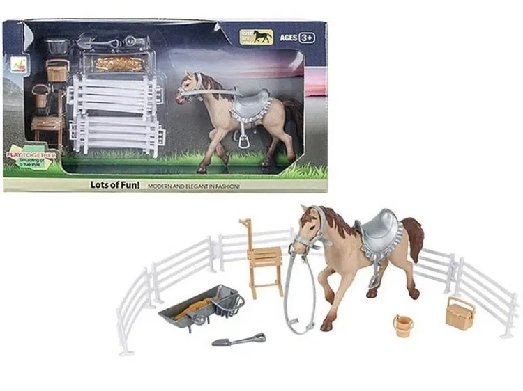 Czy znasz kogoś, kto uwielbia konie? Jeżeli tak, to ten produkt jest dla niego idealny! Jest to zestaw zawierający figurkę konia wraz z zagrodą, który wyróżnia się wymiarami 45x25x7cm.