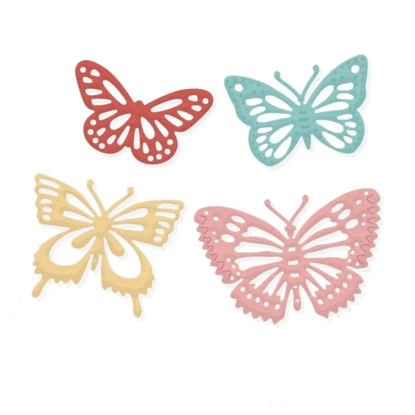 Cieszą oko swoją formą inspirowaną naturą - wykrojniki motyli stanowią doskonały dodatek do wielu prac rękodzielniczych, szczególnie tych o tematyce wiosennej czy letniej. Oferta obejmuje cztery motyle o unikalnych wzorach i różnorodnych rozmiarach, co pozwoli wzbogacić twoje projekty o wyjątkowy akcent.