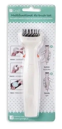 Poznaj niezawodny sposób na efektywne oczyszczanie ażurowych wykrojników z nadmiaru papieru. Mając to narzędzie, proces usunięcia resztek papieru stanie się niebywale prosty. Jego rączka skrywa dodatkowo szpatułkę i igłę, czyli elementy, które są absolutnie niezbędne w czasie pracy z wykrojnikami.