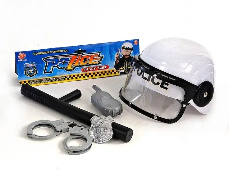 Prezentowany produkt, to kompletny zestaw stylizowany na policyjny, który charakteryzuje się nie tylko wysoką jakością wykonania, ale też dużą starannością o detale. Najważniejszym elementem tego zestawu jest hełm ochronny, który dodatkowo potęguje realistyczne odczucia podczas zabawy.