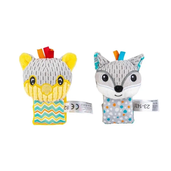 Zestaw dwóch uroczych bransoletek sensorycznych zapewni Twojemu dziecku mnóstwo radości! Wszystko za sprawą ich dopinania na rzep, dzięki czemu swobodnie możesz je nakładać i ściągać z małych dłoni. W skład zestawu wchodzą dwie grzechotki, jedna z kociątkiem, druga z szopem. Twoje dziecko będzie mogło bawić się obiema na raz lub wybierać tę, która go w danej chwili najbardziej intryguje.