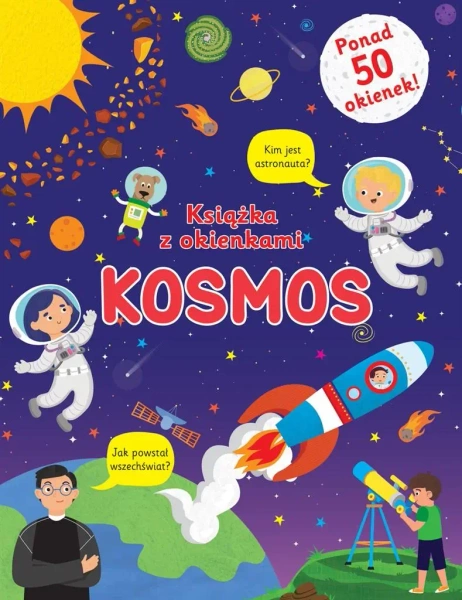 Chciałbyś dowiedzieć się, jak narodził się wszechświat? Czy jesteś ciekawy, co skrywa bezkres przestrzeni kosmicznej? Zastanawiasz się, czy w kosmosie też można znaleźć śmieci? A może nurtuje Cię zagadka - do czego astronautom służą plecaki? Wszystkie te tajemnice ujawnisz, odkrywając kolejne okienka tej niezwykłej książki. Zapewniają one zabawę pełną niespodzianek oraz ciekawe i pełne informacje o wszechświecie i naszym Układzie Słonecznym!