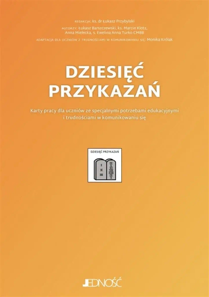 Karty pracy przygotowane z myślą o wszystkich, dla których istotne jest religijne wychowanie dzieci i młodzieży z niepełnosprawnością intelektualną. Za ich pomocą można wprowadzić uczniów w moralność chrześcijańską, omawiając poszczególne przykazania Dekalogu i wyjaśniając ich praktyczne zastosowanie w życiu człowieka wierzącego. Coraz lepsze rozumienie przykazań pozwoli uczniom bardziej świadomie i samodzielnie oceniać moralne aspekty różnych sytuacji życiowych.