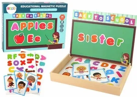 Prezentowany zestaw to wielofunkcyjny komplet puzzli magnetycznych. Skrzynka, w której go otrzymasz, zawiera litery oraz karty z nazwami różnych rodzin. Wielofunkcyjna tablica magnetyczna ma dwie strony – jedna jest przeznaczona do układania słów, natomiast druga umożliwia rysowanie za pomocą dołączonych do zestawu pisaków. To znakomity wybór, łączący zabawę i naukę w jednym.