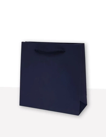Przedstawiamy granatową torbę jednokolorową o wymiarach 17 cm wysokości, 17 cm szerokości oraz 6,5 cm głębokości. Wykonana z trwałego papieru barwionego w masie o gramaturze minimum 120g/m2, gwarantuje wysoką jakość.