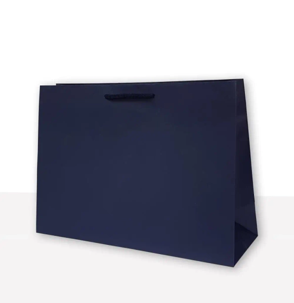 Przedstawiamy jednobarwną torebkę prezentową w eleganckim odcieniu granatowym, idealną na każdą okazję. Dzięki wymiarom: wysokość 25 cm, szerokość 34 cm, głębokość 12 cm, pomieści różnorodne podarunki.