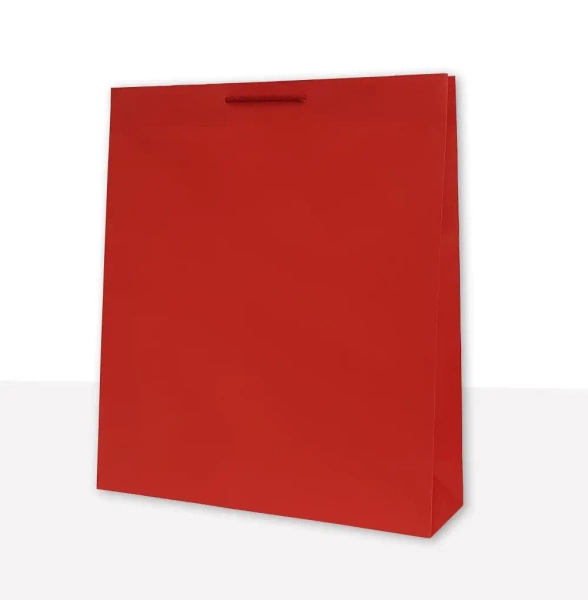 Oferujemy stylową czerwoną torebkę jednokolorową, idealną do pakowania prezentów. Jej wymiary wynoszą: wysokość 40 cm, szerokość 35 cm oraz głębokość 10 cm, co zapewnia dużo miejsca na różnorodne upominki.
