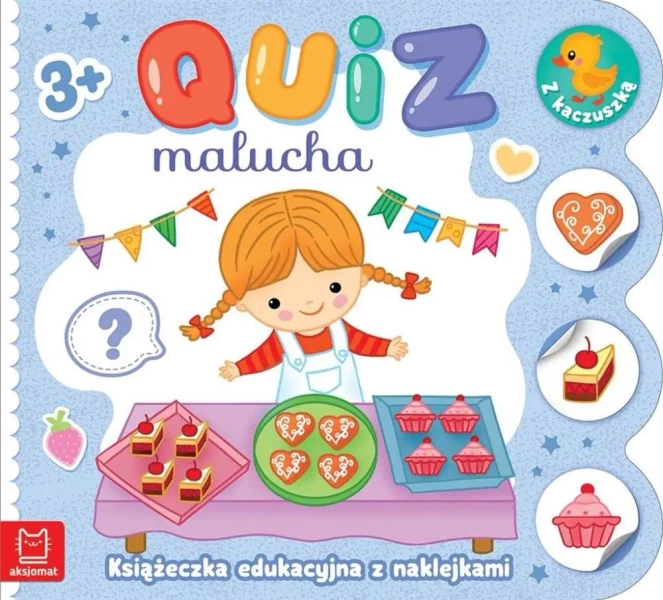 Quiz dla malucha z naklejkami to idealny sposób na stymulację naukową, a jednocześnie zapewniający wiele zabawy. Twoje dziecko ma szansę nauczyć się, jak samodzielnie sprawdzić swoją wiedzę. Dynamiczna nauka polega na przyklejaniu naklejek, a następnie wybieraniu odpowiedzi - naklejka z poprawną odpowiedzią ma identyczny kolor tła jak przestrzeń pod sympatyczną kaczką. Naucz się poprzez zabawę z naklejkami i poznawaj świat!