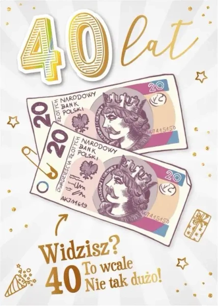 Prezentujemy państwu elegancki karnet urodzinowy, który jest dostępny w komplecie z dołączoną kopertą. Idealny do złożenia serdecznych życzeń z okazji czterdziestych urodzin.