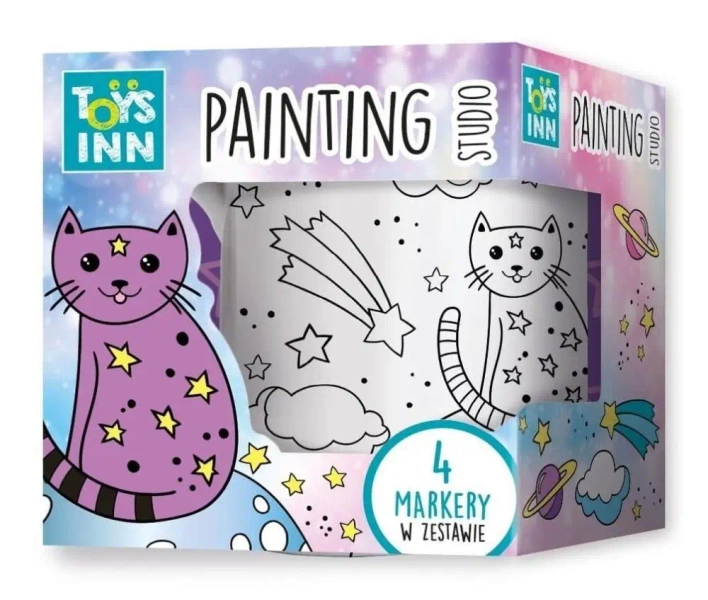W skład zestawu wchodzą markery o czterech żywych kolorach: żółtym, różowym, niebieskim i fioletowym. Te barwne pisaki umożliwiają każdemu dziecku, podkreślenie swojej kreatywności i wyrażenie swojego stylu poprzez indywidualne pokolorowanie kubka.