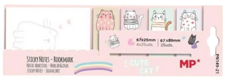 Karteczki samoprzylepne indeksujące, które są niezastąpione dla miłośników zwierząt. Wyglądają jak zabawne kociaki, które przyciągają uwagę i sprawiają, że codzienne notatki stają się o wiele bardziej interesujące. Idealne do znakowania stron w książkach, dokumentach i notatkach, a także jako dodatek do prezentów dla miłośników kotów.EAN: 8435464205531