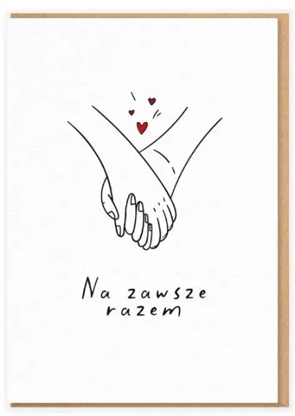 Wczoraj, dzisiaj, na zawsze razem! Z tą osobą przyszłość jest jasna jak słońce. Kartka miłosna "Na Zawsze Razem" z minimalistycznym wzorem splecionych dłoni to doskonały pomysł na prezent dla chłopaka, narzeczonego lub żony. W zestawie znajduje się również koperta, a wnętrze kartki pozostaje puste, gotowe na zapisanie osobistych słów prosto z serca!